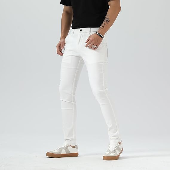 | Skinny fit through hip and thigh, these plaid pants for men sit at the natural waist; the innovative mens plaid dress pants bring younger looking. ALL-DAY COMFORT. Made from a nylon &viscose blend with added spandex that moves with you for all day comfort. Throw together an effortless look with these skinny pants for men. With these mens skinny dress pants, we make looking great incredibly easy. Keep it casual and stylish as you step out wearing the mens skinny pants, these men's skinny dress pants can keep you comfort all day. Whether you step into the office or step out on the weekend, our men's skinny chinos fit your needs perfectly. Thank to the TR fabric with flex, even they are Skinny fit, you can still move and walk freely wearing these mens fashion pants. And these fashion pants for men bring a sleek silhouette. Pinstripe pants for who want a more modern feel with the refined extra slim fit, the style it's good for dress up and dress down. |