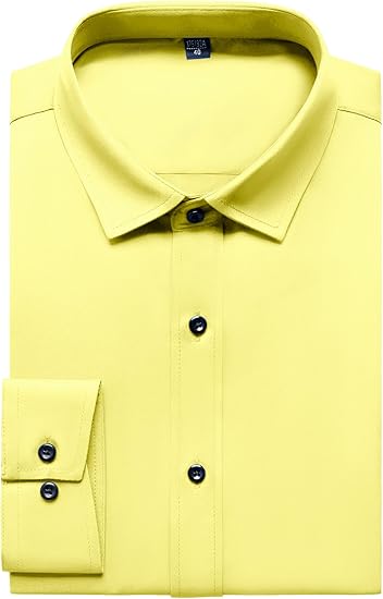 Men's Stretch Wrinkle Free Dress Shirts Formal Wedding Prom Long Sleeve Slim Fit Button Down Shi