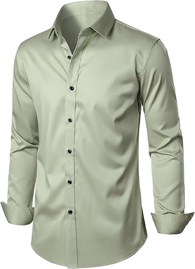 Men's Stretch Wrinkle Free Dress Shirts Formal Wedding Prom Long Sleeve Slim Fit Button Down Shi