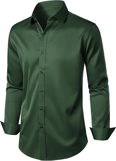 Men's Stretch Wrinkle Free Dress Shirts Formal Wedding Prom Long Sleeve Slim Fit Button Down Shi