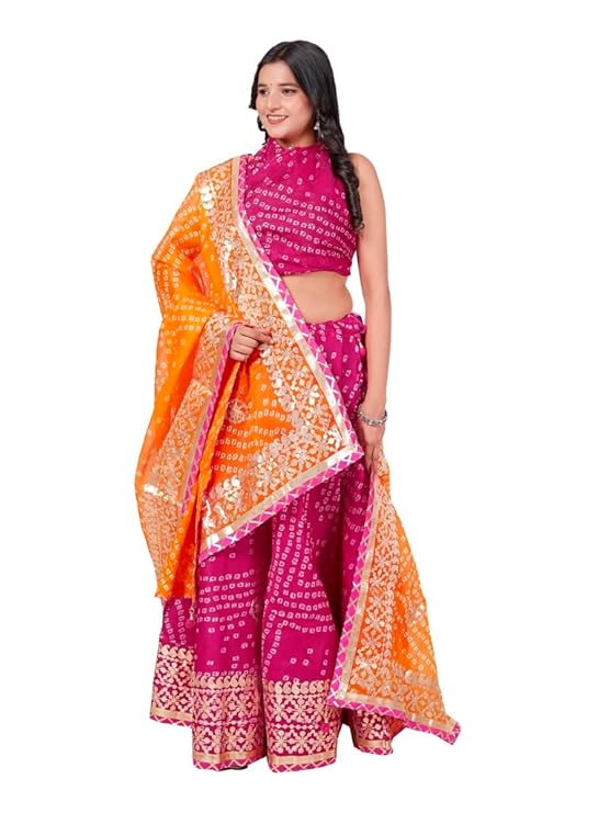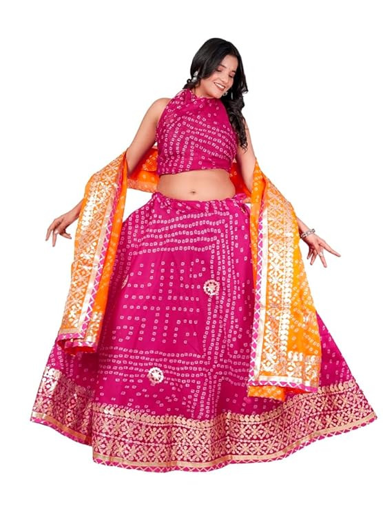 Traditional Ethnic Kota Doria Bandhani Lehenga Choli Set for Wedding and Ethnic FestivalEmbroidered