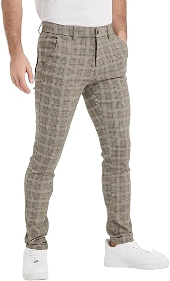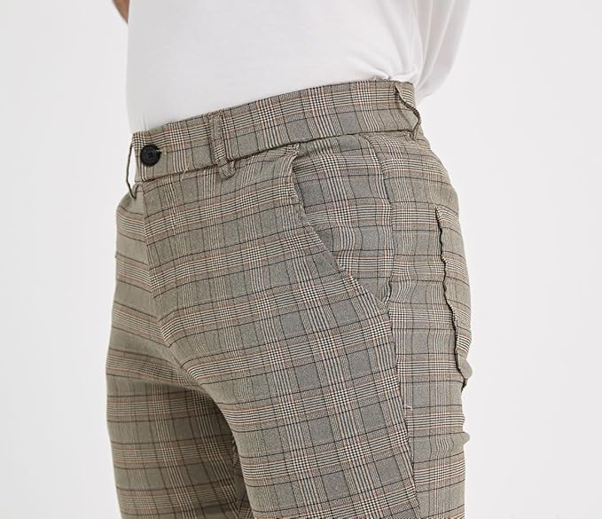Men's Plaid Pants Skinny Dress Pants for Men Skinny Chino Pants Men
