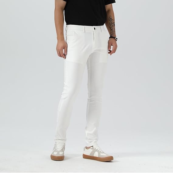 | Skinny fit through hip and thigh, these plaid pants for men sit at the natural waist; the innovative mens plaid dress pants bring younger looking. ALL-DAY COMFORT. Made from a nylon &viscose blend with added spandex that moves with you for all day comfort. Throw together an effortless look with these skinny pants for men. With these mens skinny dress pants, we make looking great incredibly easy. Keep it casual and stylish as you step out wearing the mens skinny pants, these men's skinny dress pants can keep you comfort all day. Whether you step into the office or step out on the weekend, our men's skinny chinos fit your needs perfectly. Thank to the TR fabric with flex, even they are Skinny fit, you can still move and walk freely wearing these mens fashion pants. And these fashion pants for men bring a sleek silhouette. Pinstripe pants for who want a more modern feel with the refined extra slim fit, the style it's good for dress up and dress down. |