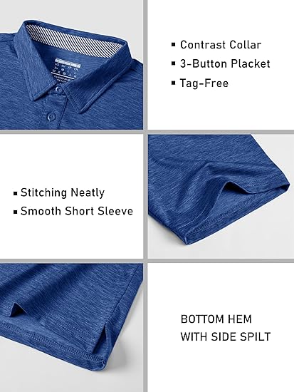 | MATERIAL: 95% Polyester & 5% Spandex, Silky-soft, Durable, Lightweight, Breathable And Comfortable. MOISTURE WICKING: This Polo Shirts will quickly dry all while remaining soft, lightweight and breathable. STRETCH FABRICS: This performance golf polos have an athletic, regular fit, which allows for great mobility in any direction. This casual wardrobe-essential polo features a lightweight fit for everyday wear. COMFORTABLE: Classic spread collar and 3-button placket for a custom fit, tag-free neck reduce chafing, side slit design and rib knit cuffs for added comfort. GREAT FOR: Daily Wear, Bussiness Wear, Office Wear; Sports & Outdoor Activities: Like Golf, Tennis, Running, Training, Workout, Jogging, Hiking, Camping,and Other Sports. Comfortable for both indoor and outdoor wears in summer, spring or fall. |