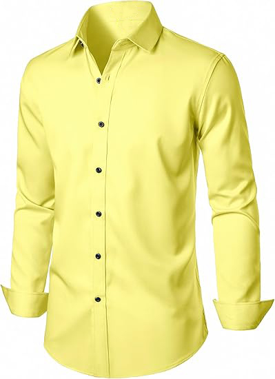 Men's Stretch Wrinkle Free Dress Shirts Formal Wedding Prom Long Sleeve Slim Fit Button Down Shi