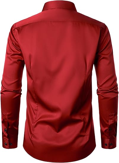 Slightly Shiny Fabric:Like satin silk, this shirt has more shiny than cotton dress shirts. It is soft and comfortable to the touch, cool and smooth, beautiful and eye-catching, making it very suitable for weddings, balls, parties, and other events. If used in work or business occasions, it might be too shiny