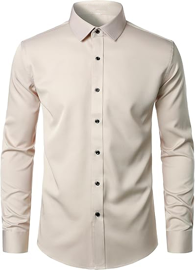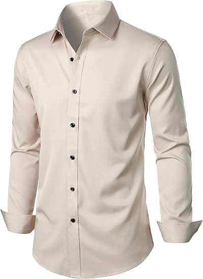 | Care: Machine wash,tumble dry or line dry,low temperature ironing Slightly Shiny Fabric:Like satin silk, this shirt has more shiny than cotton dress shirts. It is soft and comfortable to the touch, cool and smooth, beautiful and eye-catching, making it very suitable for weddings, balls, parties, and other events. If used in work or business occasions, it might be too shiny Slight Elasticity:Due to the fabric containing only 5% spandex, the elasticity is relatively weak. The elasticity of this shirt runs horizontally from left to right. Polyester-spandex blended fabric offers excellent stability,low shrinkage rate, durable Slim Fit:Compared to classic slim fit shirts, this shirt has longer sleeves and a slightly wider waist. If you prefer an extremely fitted look, we recommend choosing a smaller size Wrinkle-Free:Due to packaging reasons, the shirt may need ironing before its first use; "wrinkle-free" means that the shirt has been treated to be less prone to wrinkles compared to regular clothing, making it easier to care for. However, this does not mean that it will never have wrinkles |