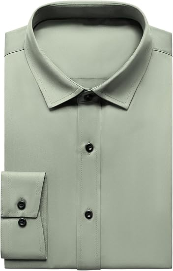 Men's Stretch Wrinkle Free Dress Shirts Formal Wedding Prom Long Sleeve Slim Fit Button Down Shi