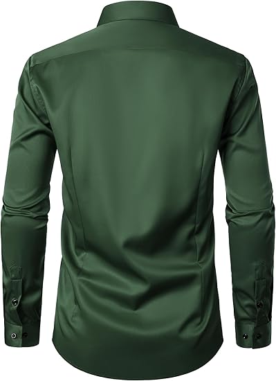 Men's Stretch Wrinkle Free Dress Shirts Formal Wedding Prom Long Sleeve Slim Fit Button Down Shi