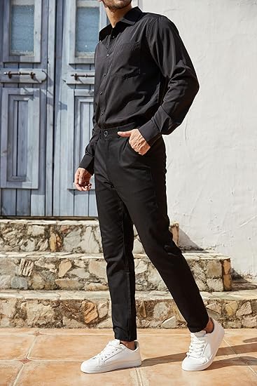 | ?FABRIC -- Polyester and Cotton, Made with stretchy fabric, Mens skinny pants can wear it not only enough fashion, but also enough comfortable . ?FEATURE -- The slim fit dress pant delivers the perfect mix of comfort and performance. ?DESIGN -- Mens slim fit Long Pants can highlight your figure. Not too tight, not too loose, with just the right amount of fabric. It features sit lower on the waist, skinny through the thigh with a tapered leg opening. ?OCCASION -- Perfect for at the restaurant, work, business, Workout, party, dating, golf, or at home among family and friends. The fashion pants is a must-have in every wardrobe, it's so suitable to pair it with shirt and leather shoes. ?Note -- We provide detailed size information at the bottom of the size table, please check carefully before ordering. If there is any problem, you can exchange at any time. |
