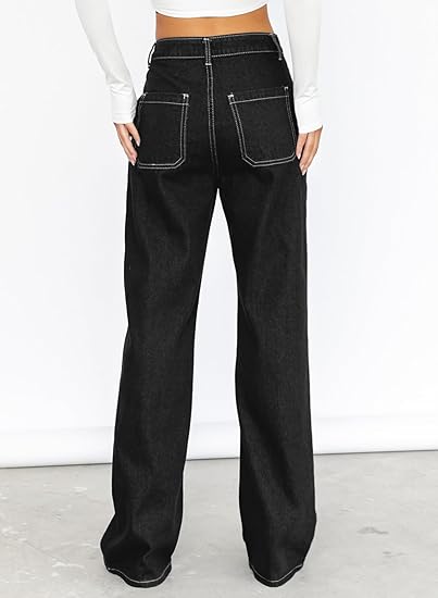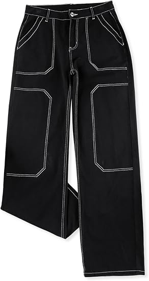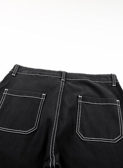 | Features: Trendy cargo jean features wide leg, four pockets, contrast color stitches, mid rise, loose fit, button and zipper closure and full length. The unique visible seam line detail adds a touch of individuality and makes you stand out in a crowd Design: Wide leg jean could flatter a variety of leg types, providing ample room for movement and breathability. Cargo pants are versatile and practical addition to any wardrobe, making styling easier with their all-match cargo jeans style Style: Baggy jeans are the key to creating effortless style. Boyfriend jeans are both suitable for everyday wear and for dressing up, and can be easily paired with a tank top, T-shirt, camisole, blouse, sneakers, high heels, and more |