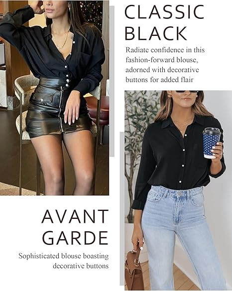 | Effortless Style, Multiple Options: Elevate your look with our black button up shirt women. These business casual outfits for women seamlessly blend comfort with chic style. The 3/4 sleeves offer versatility—wear them as is, roll them up, or opt for a classic long sleeve look. Perfect for various weather, occasions, and outfit needs, this shirt provides a simple yet stylish solution for your wardrobe. Ultimate Comfort, Latest Style: Stand out in our 3/4 length sleeve womens tops. Crafted from a cozy blend of 95% Rayon and 5% Spandex, these shirts offer unbeatable comfort. With a relaxed fit and lightweight feel, these business casual tops for women are effortlessly stylish. A must-have for your wardrobe, they strike the perfect balance between comfort and trendy fashion. Effortless Elegance: Introducing a must-have for your closet—the women's clothing! Slip into the carefree energy of our blouses & button-down shirts and share your style masterpieces with us. Perfect for every occasion, these work shirts for women seamlessly elevate your look, be it for casual days, work, travel, or a night out. Daily Chic: Elevate your style with this womens spring fashion 2025, a daily essential. Pair it effortlessly with jeans, leggings, pants, or shorts for a chic look suitable for various occasions—parties, club nights, dinners, dates, weddings, and vacations. Transition seamlessly into professional settings by incorporating it into your work or business attire, ideal for school, office, interviews, and formal occasions. |