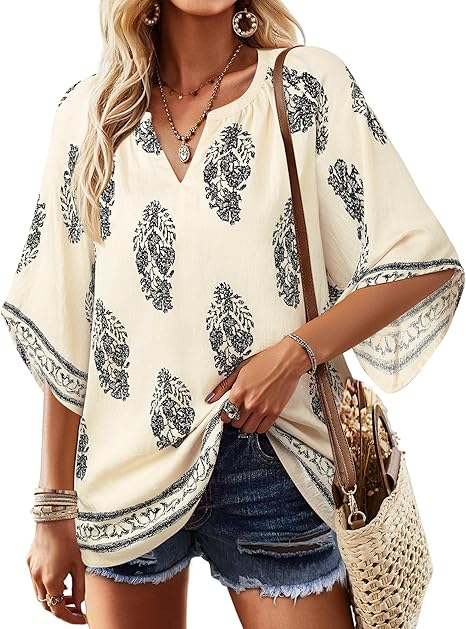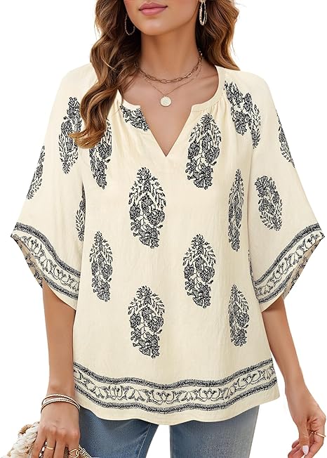 Womens Tops Dressy Casual 3/4 Sleeve Shirts Tunic Blouses Plus Size Tops for Women
