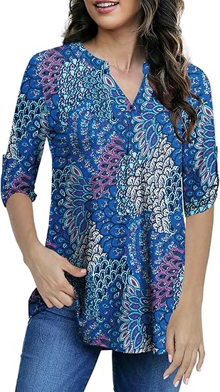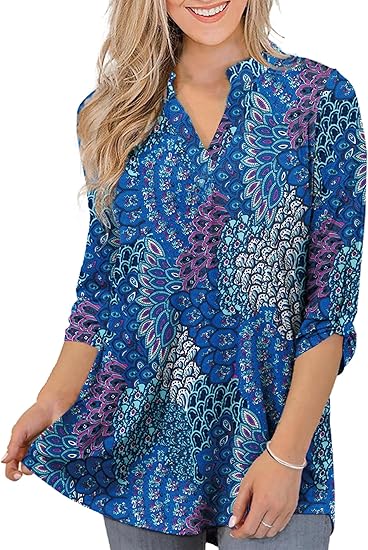 Womens Tops Dressy Casual 3/4 Sleeve Shirts Tunic Blouses Plus Size Tops for Women